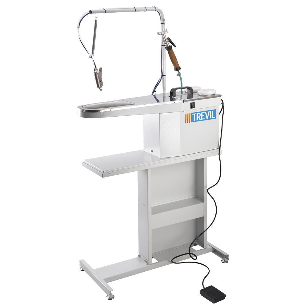 Poate fi pozitionat pe o masa, sau pe caruciorul corespunzator, disponibil la cerere, prevazut cu raft pentru produse pentru indepartarea petelor.